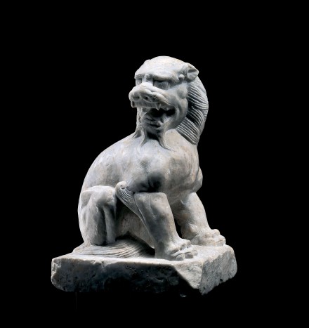 The lion is not indigenous to China. The image of a lion was first introduced to China by ‘Silk Road’ contacts in the 4th century A.D., as the emblem of the historical Buddha Sakyamuni. Lions also appeared as guardians of the sacred law on altarpieces and in cave temples, flanking the throne of the Buddha. The supernatural power and protective strength of the lion image soon led to the use of lions as part of the retinue of animal, human and mythical guardian creatures in Chinese burial practice.