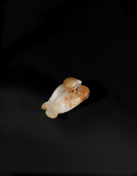 清乾隆 褐斑白玉「喜上眉梢」雙鵲 長 7 厘米